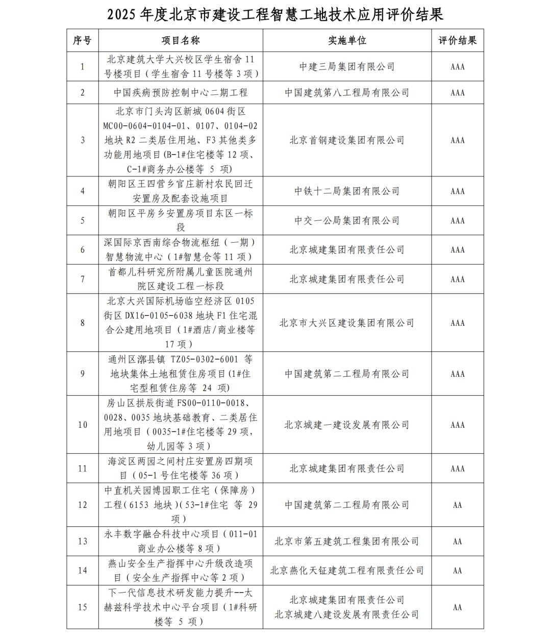 为深入贯彻落实《北京市推动智能建造与新型建筑工业化协同发展的实施方案》、《北京市智能建造试点城市工作方案》等文件精神,北京城建科技促进会针对北京市行政区域内在施的房屋建筑和市政基础设施工程组织开展2025年度北京市建设工程智慧工地技术应用评价工作。11月25日,“朝阳区王四营乡官庄新村农民回迁安置房及配套设施项目(C-1#住宅楼等27项)”智慧工地技术应用评价现场复评专家会顺利举行,王四营官庄新村项目获AAA级智慧工地评价。
